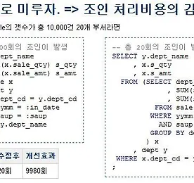 Windows Developer/Oracle 썸네일형 리스트형 [Oracle] 오라클 Listener - 접속 [출처] 오라클 Listener - 접속|작성자 jxs2 http://blog.naver.com/jxs2/110116836654 1. 오라클 서버를 위한 준비과정 - Listener 준비 1) Listener 상태보기 콘솔에서 C:\루트로가서.. lsnrctl status 파일로 status 결과를 저장할려면 lsnrctl status 드라이브명:\경로\저장할이름.txt : 리스너 중지 lsnrctl stop 리스너 시작 lsnrctl start 2) 오라클 서버의 IP주소가 변경되어질때 - 리스너 수정해야 한다. c:\oracle\procudt\10.2.0\db_a\network\admin 폴더의 listener.ora 를 편집기(메모장등)으로 연다. 내용들중 2가지 변경 host - 변경 (현재 ip.. 더보기 [Oracle] Sequence 증가 분 이상 시 증상: sequence 생성 이후 seq_name.nextval로 생성되는 숫자가 1, 2, 3 으로 순차적으로 증가하는 것이 아니라 10, 20씩 늘어나는 경우가 있다. 이유: sequence에 cache 옵션이 선택되었기 때문이다. cache 옵션을 사용하면 속도를 증가시키기 위해 sequence 번호를 한 번에 여러 개씩 메모리에 올려놓고 작업을 한다. 이것을 사용하면 매번 sequence 번호를 생성하는 것보다 빠르기 때문이다. 이러한 경우에 DB를 중지시키거나 전원이 off 되는 경우에 메모리에 있던 번호가 삭제되기 때문에 이러한 증상이 발생된다. 즉 cache 옵션이 20개씩 시퀀스 번호를 생성하도록 설정되어 있다면 한번에 1부터 20까지 시퀀스 번호를 생성한다. 이 상태에서 DB를 중지하고 .. 더보기 [Oracle]시퀀스 생성 및 삭제 Unique Key를 생성하는 방법은 DBMS마다 차이가 있다. MS-SQL은 IDENTITY를, MySQL은 auto_increment와 같이 쉽게 사용할 수 있는 방법이 있는데 오라클에서는 Sequence를 사용하여 다음과 같이 유사하게 구현할 수 있다 1. 자동증가컬럼을 사용하고자 하는 MYTABLE테이블을 생성한다. CREATE TABLE MYTABLE (ID NUMBER, NAME VARCHAR2(20)); 2. CREATE SEQUENCE 라는 문장을 사용하여 SEQ_ID라는 이름의 시퀀스를 만든다. CREATE SEQUENCE SEQ_ID INCREMENT BY 1 START WITH 10000; -- INCREMENT BY 1 : 증가값은 1 -- START WITH 10000 : 1000.. 더보기 [oracle]Drop User asp013 계정만 삭제되고 TableSpace는 존재하게 되는 것을 확인할 수 있다. 더보기 [Oracle] 힌트사용 index_desc Max함수로 인한 풀스캔을 범위스캔으로 변경할 수 있다. 힌트를 사용하면 수십만건의 데이터를 순식간에 뽑아 낼수 있다. 다음 예제로 확인을 해보자. 풀스캔으로 인한 쿼리 실행 힌트를 사용한 부분범위 쿼리 실행 결과가 확연히 다른것을 볼 수 있다. 9912291151411은 PbsResNum의 Max값이 9912291151412이므로 해당조건을 맞추기 위함이다. 위 경우는 예시를 든것이고 날짜의 경우 MAX로 인한 풀스캔을 하지 않고도 위와 같이 힌트를 줘서 데이터를 순식간에 뽑아 낼수 있다. 더보기 [Oracle] Inline View [출처] 오라클 클럽 http://www.oracleclub.com - 인라인 뷰란? FROM절에 오는 서브쿼리로 최종집합을 만들어 내기 위한 중간집합이다 - 인라인뷰의 남용 절차적 사고에 젖어있는 개발자에겐 인라인뷰로 만들어내지 못할 집합은 없다. 1차로 생성해둔 집합에 추가적인 처리를 하고 싶으면 괄호로 묶어 인라인뷰로 만들어 다른 집합과 조인하거나 2차 가공처리에 들어간다. 여기에 또다른 처리가 있으면 UNION을 하거나 조인을 하고, 또다시 인라인뷰를 만들어 가면서 쿼리는 소설이 되고 만다. 되도록이면 절차적인 쿼리인 인라인 뷰를 줄이고 한번에 처리하는 것이 좋다. 더보기 [oracle] 다이나믹 쿼리에서의 DECOD함수 활용 보호되어 있는 글입니다. 더보기 [oracle] OracleDataAdapter를 사용한 DataTable 채우기 비주얼 스튜디오 2008에서는 DataTable에 Load()멤버 함수가 있어서 DataTable에 값을 채우기에 편하지만 2003의 경우는 Load()함수가 없다. 그럼 이런 경우에는 어떻게 해야 할까? 위와 같이 OracleDataAdapter를 사용해서 DataTable에 결과쿼리의 값을 얻을 수 있다. 더보기 [oracle] DBNull 예외 처리 위 에러는 DB에서 값을 가져올 때 0이 아닌 널을 리턴하기 때문에 값을 DBNUll형식이기 때문에 에러가 발생한다 이는 아래와 같이 IsNullOrEmpty속성으로 예외처리를 할 수 있다. (수정전) If sDbNullCheck.IsNullOrEmpty(oPatients.Rows(0).Item("ComPay").ToString) Then iDataCnt = 0 Else (수정후) If String.IsNullOrEmpty(oPatients.Rows(0).Item("ComPay").ToString) Then iDataCnt = 0 Else String객체의 멤버 함수 속성을 사용해야 Warring이 사라진다. if DB 값(DBNull) is System.DBNull.Value Then 과 같이 하면 해.. 더보기 [oracle] 쿼리 문자열에서 나는 에러 메세지 관계 연산자가 부적합하다는 에러 메세지의 경우 쿼리상에서 문자열을 대입할때는 '문자'(콤마)로 감싸야 한다. 대부분 콤마가 빠져서 나는 에러다. 누락된 우괄호 에러 메세지의 경우 대부분 이 경우는 쿼리 상에서 () 괄호가 빠졌거나 문자열 상에서 붙어서 쿼리가 잘못 씌여지는 경우에 발생한다. 누락된 표현식의 경우는 , 쉼표가 빠지거나 잘못 추가된 곳이 있다면 에러가 난다. 위의 경우는 첫번째 라인에 , as WatPay, 이부분에 쉼표가 두개 들어가서 나는 에러이다. 위 에러 메세지는 눈에 잘 보이지 않고 오렌지로 실행시에 문제가 없어서 헤매는 경우가 많다. 에러 메세지 단번에 잡아 버리자 ㅎ 더보기 이전 1 2 3 다음